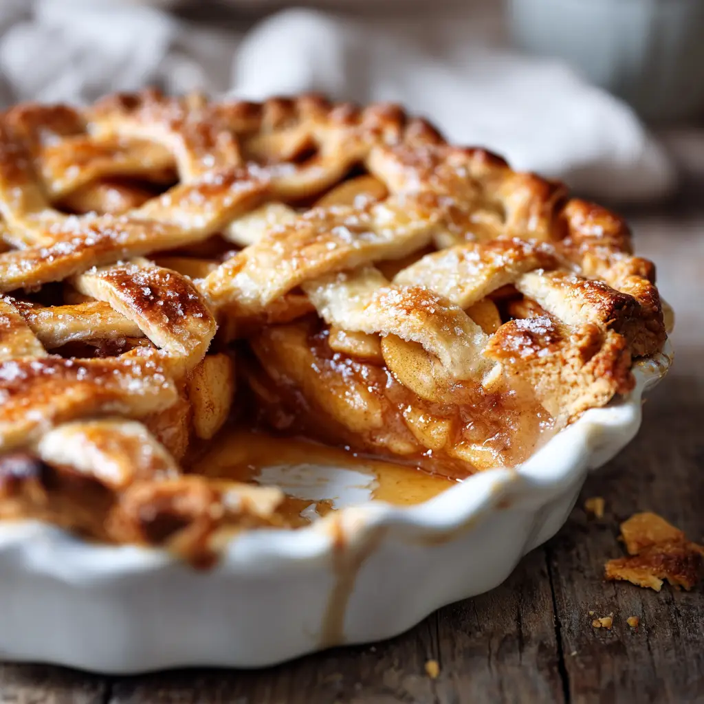 Through the gaps of the beautiful lattice pastry crust, you will see thick, bubbling amber syrup clinging to tender, cinnamon-spiced baked apple slices. The secret lies in creating a caramelized sauce that binds the fruit together, completely eliminating the dreaded watery bottom.