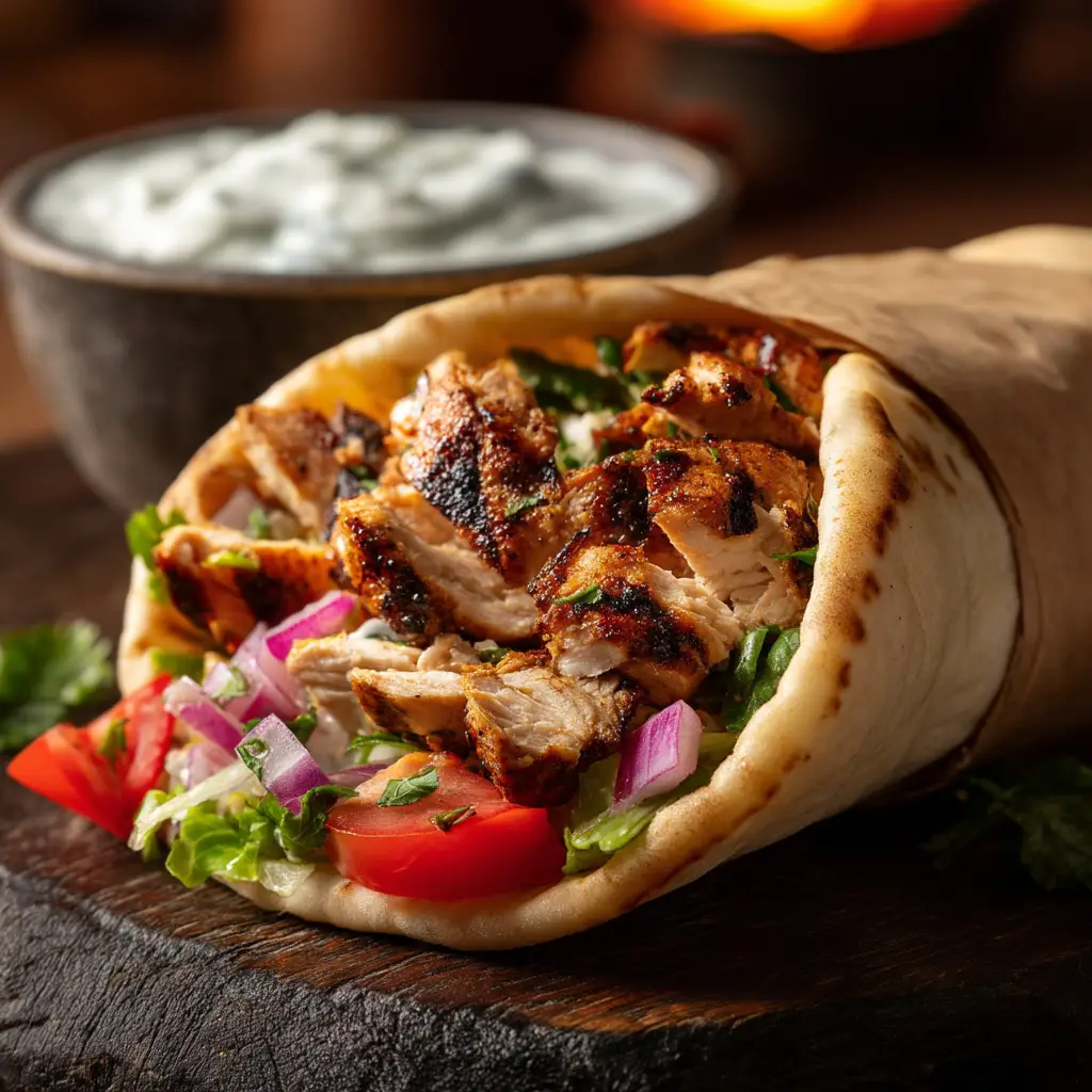 Once cooked, let the chicken rest for 5 minutes before slicing it into thin strips. This is crucial for keeping it juicy! Warm your pita bread and assemble your wraps. Layer the sliced chicken, lettuce, tomato, onion, and a generous drizzle of the creamy garlic yogurt sauce. For a different dinner idea with bold flavors, check out these Korean BBQ Steak Rice Bowls.