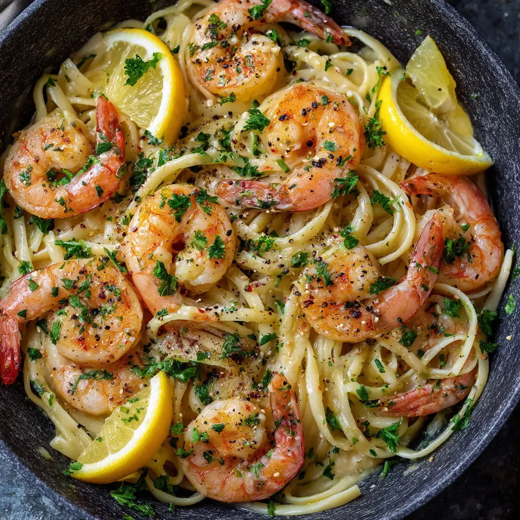 Lemon Butter Garlic Shrimp Pasta