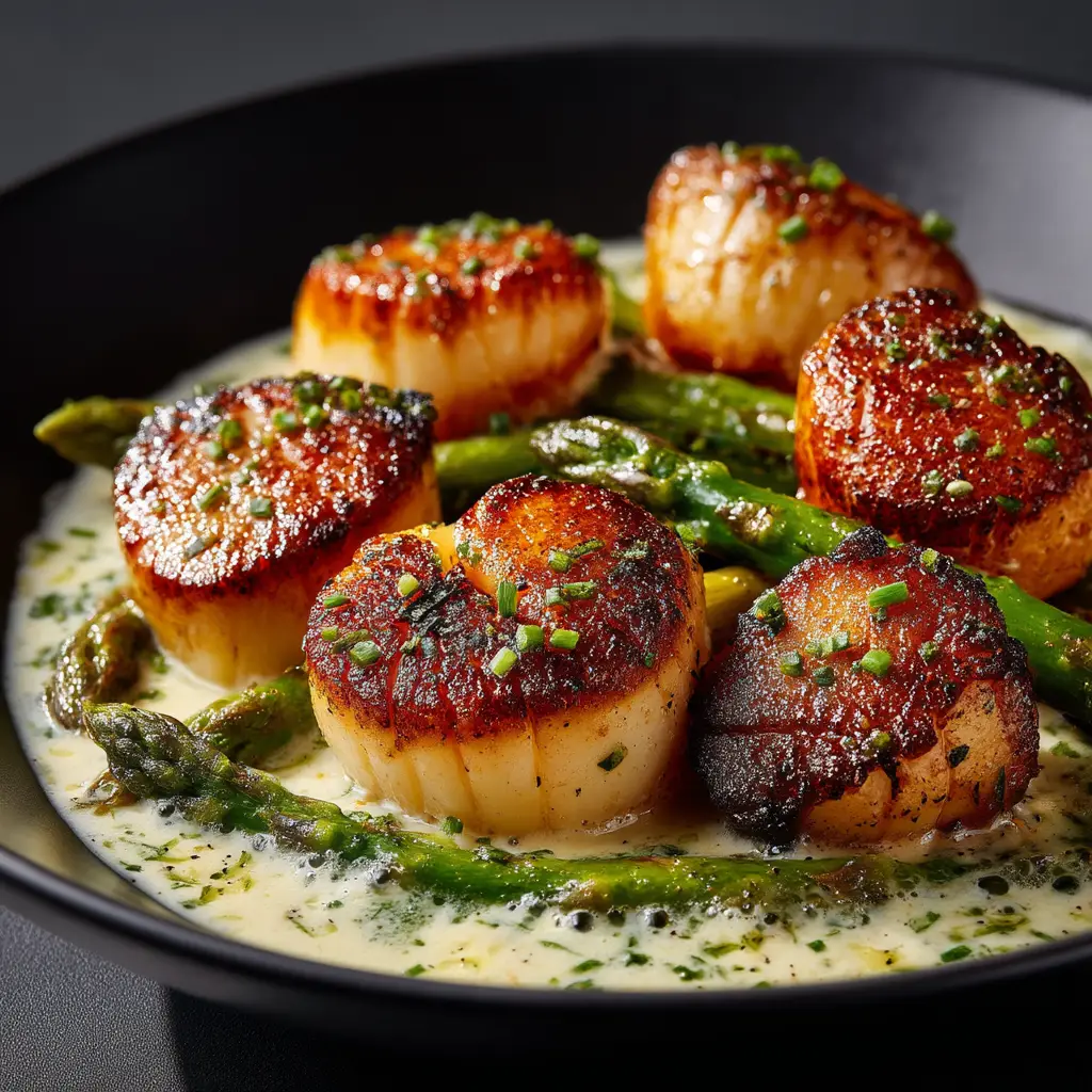 - For the Scallops: Large sea scallops, olive oil, butter, salt, and freshly ground black pepper.