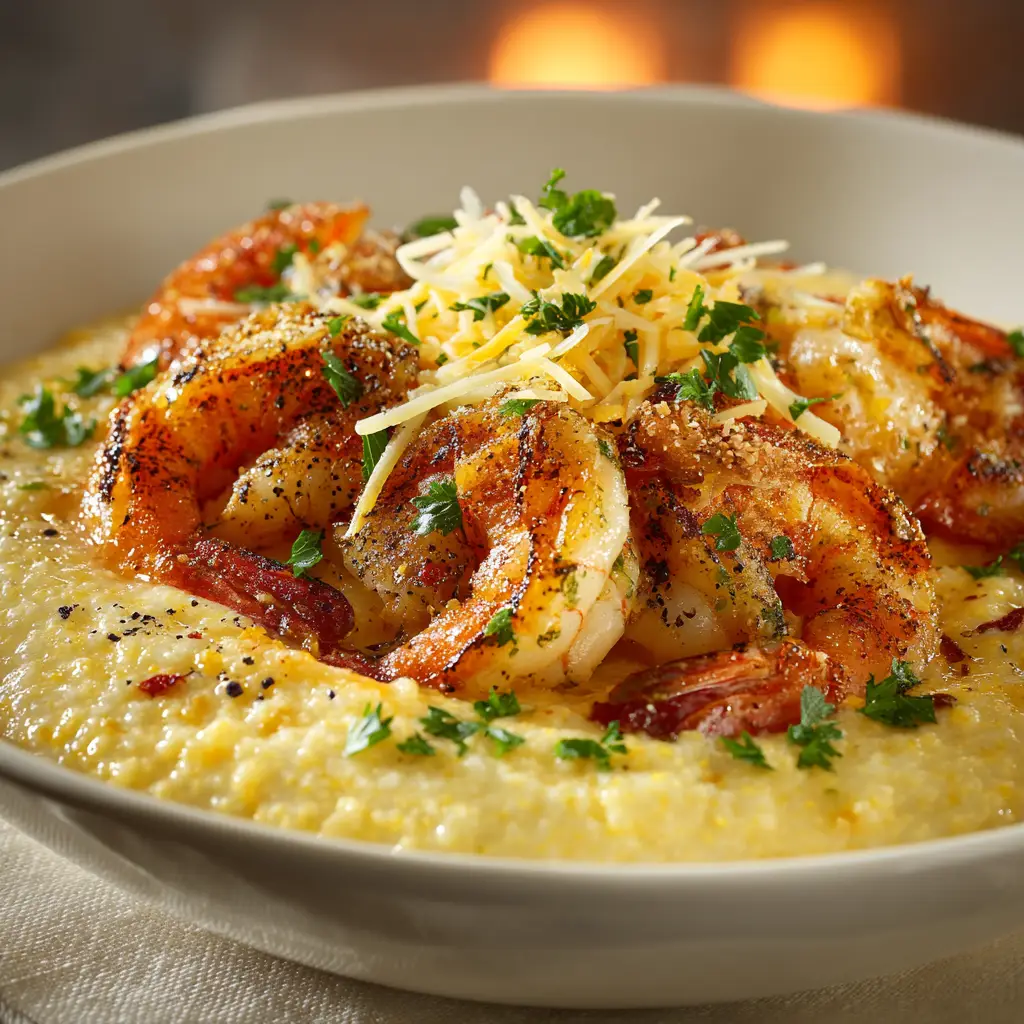- Serve: Spoon the cheesy grits into bowls and top with the shrimp and sauce. Garnish with fresh parsley or green onions.