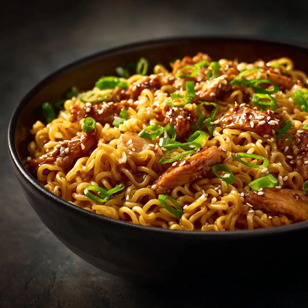 - Finish the Dish: Add the cooked noodles to the skillet with the chicken and sauce. Toss everything together until the noodles are well-coated and heated through. Serve immediately, garnished with sliced green onions and sesame seeds.