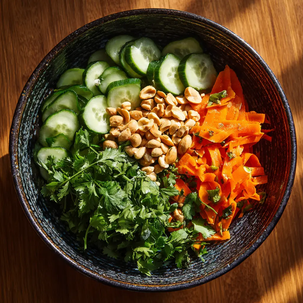 This salad is best enjoyed fresh to maintain the crunchiness of the cucumbers. However, if you need to make it ahead of time, you can prepare the components separately. Slice the vegetables and store them in an airtight container in the refrigerator. Mix the dressing and keep it in a separate sealed jar. When you’re ready to serve, simply combine the vegetables, dressing, and peanuts.